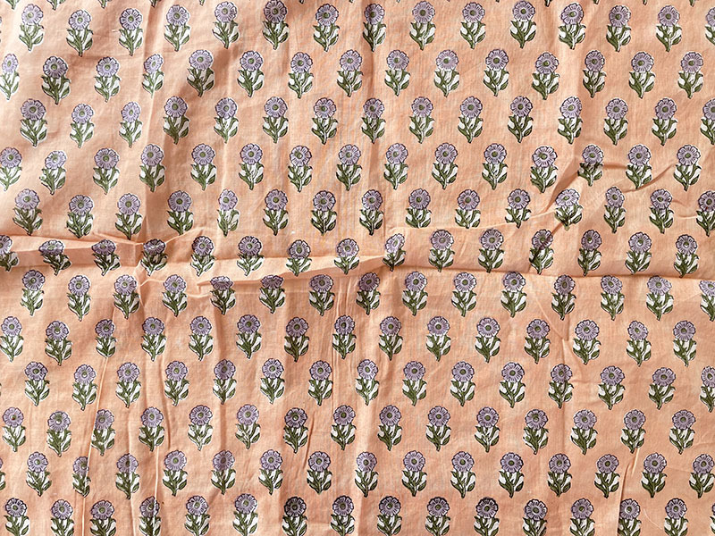 インド ブロックプリント ブランケット フラワー リバーシブル ピンク [253008]