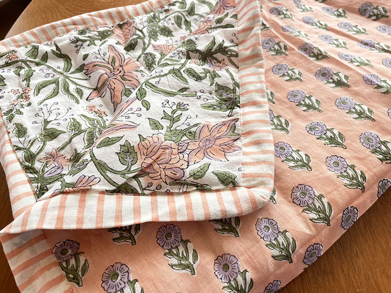 インド製のブロックプリントテキスタイルで作られたブランケット。