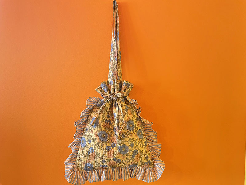 インド ブロックプリント フリル巾着トートバッグ フラワー イエロー [256019]